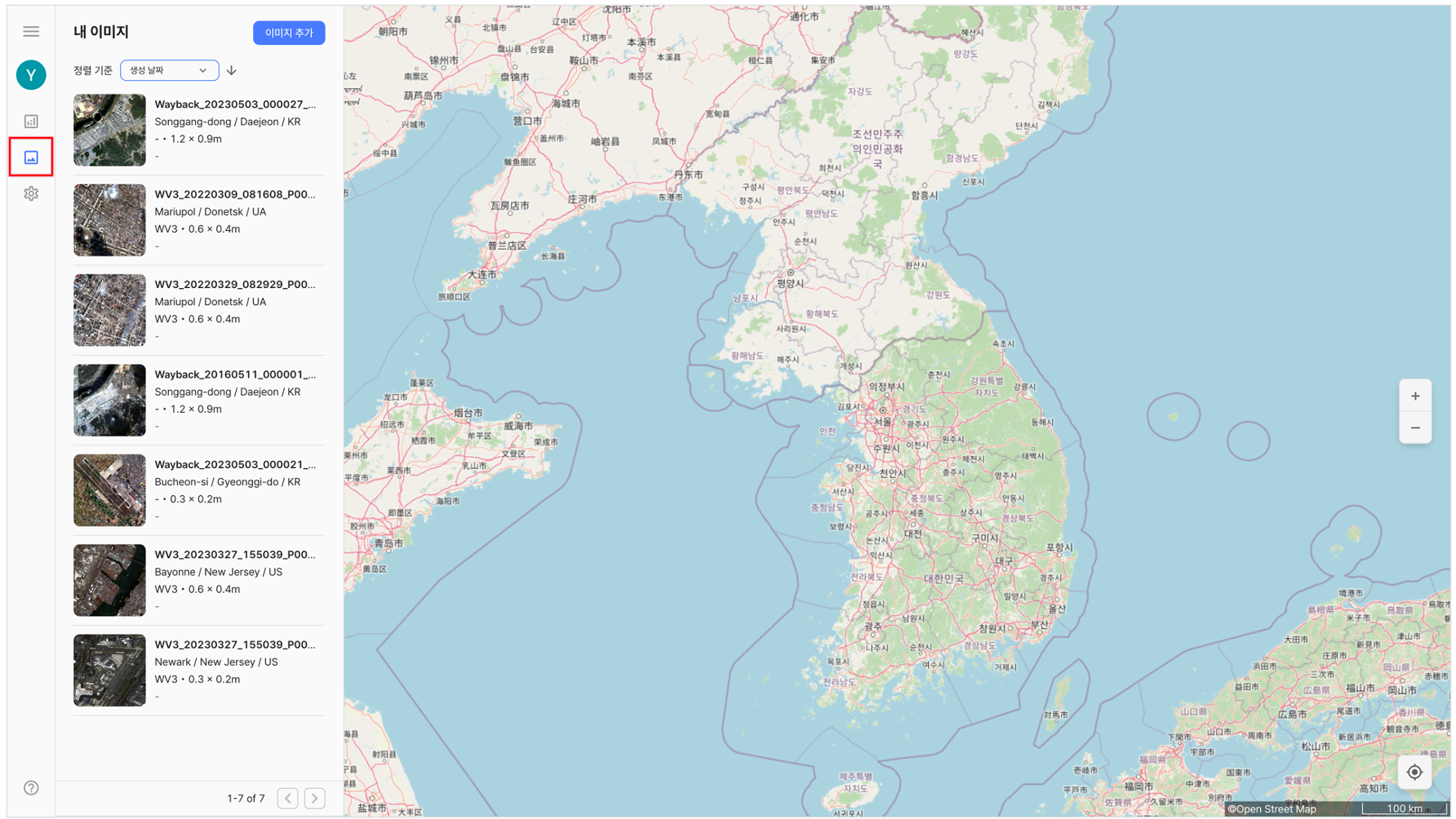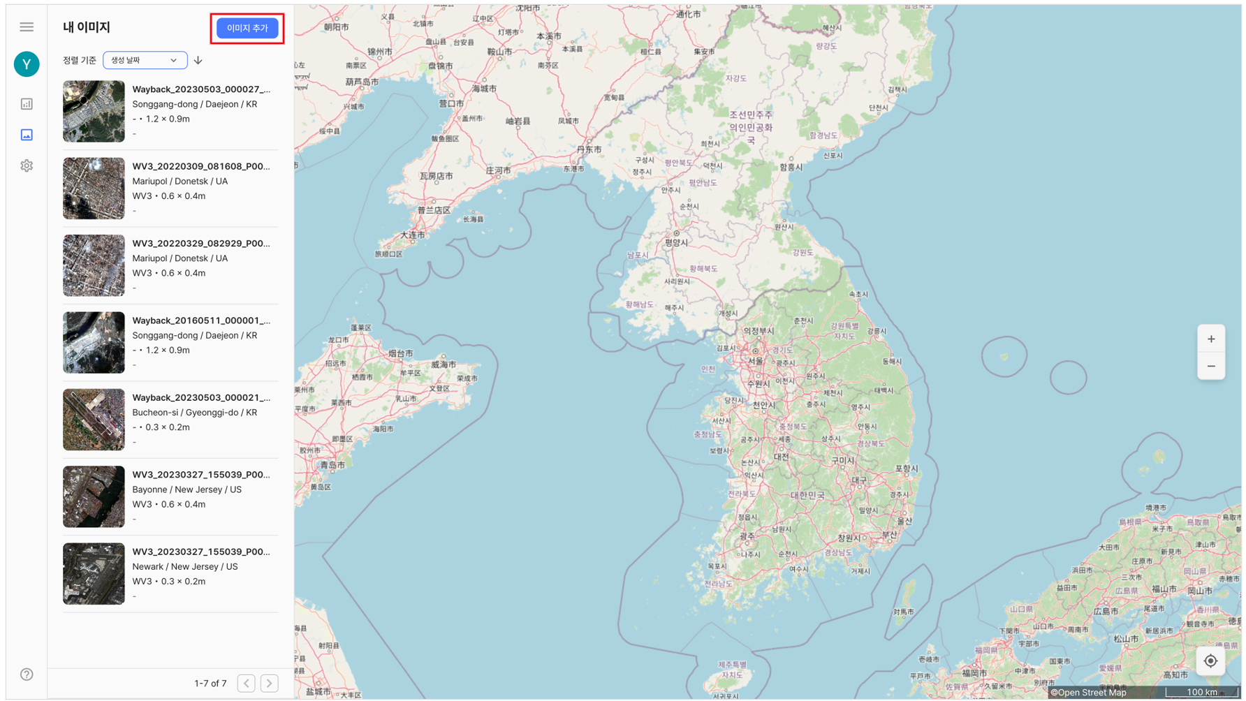 좌측 메뉴 상단의 [이미지 추가] 버튼을 클릭합니다.